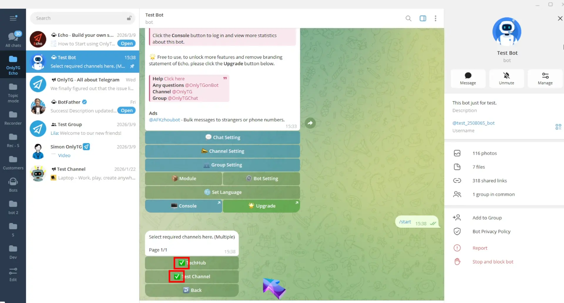 OnlyTG Echo provides the function to Publish Channel Post via your bot. Firstly, you need to create a new bot via @botfather and…