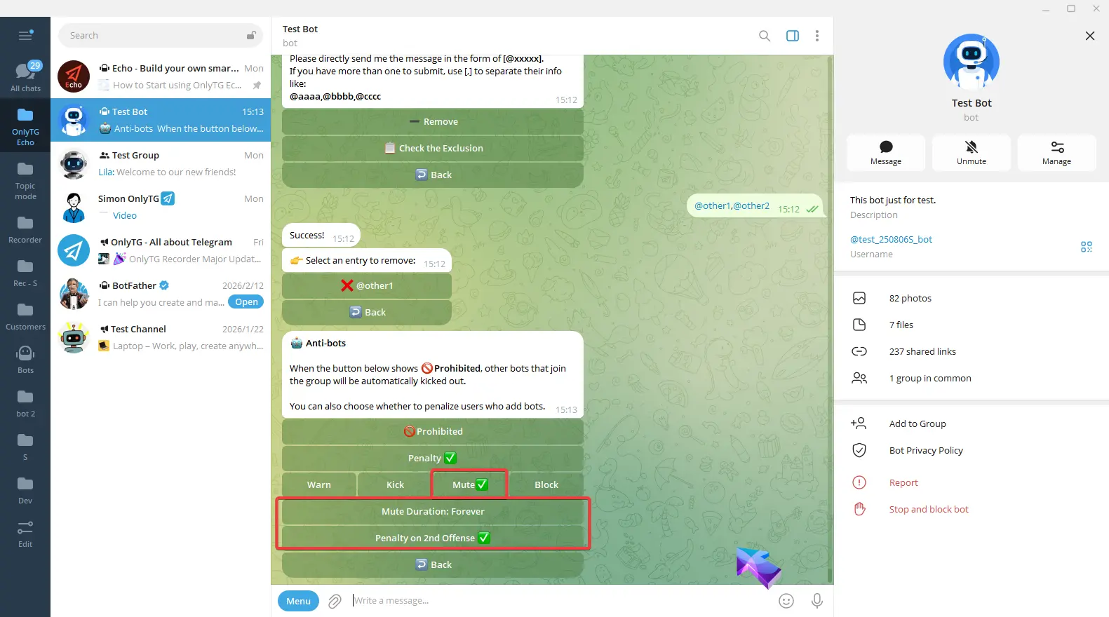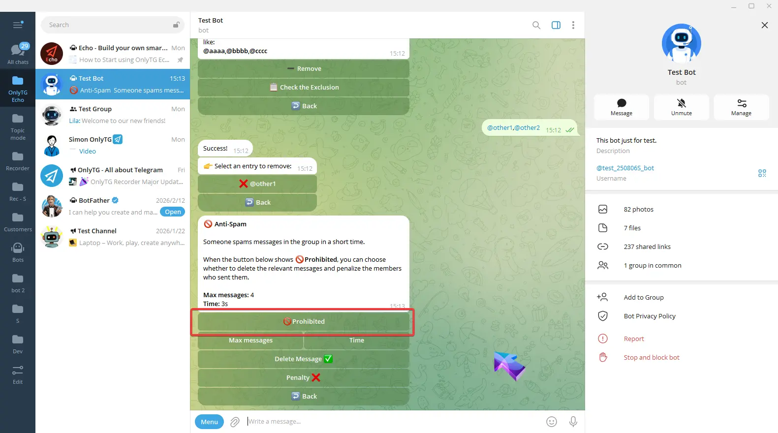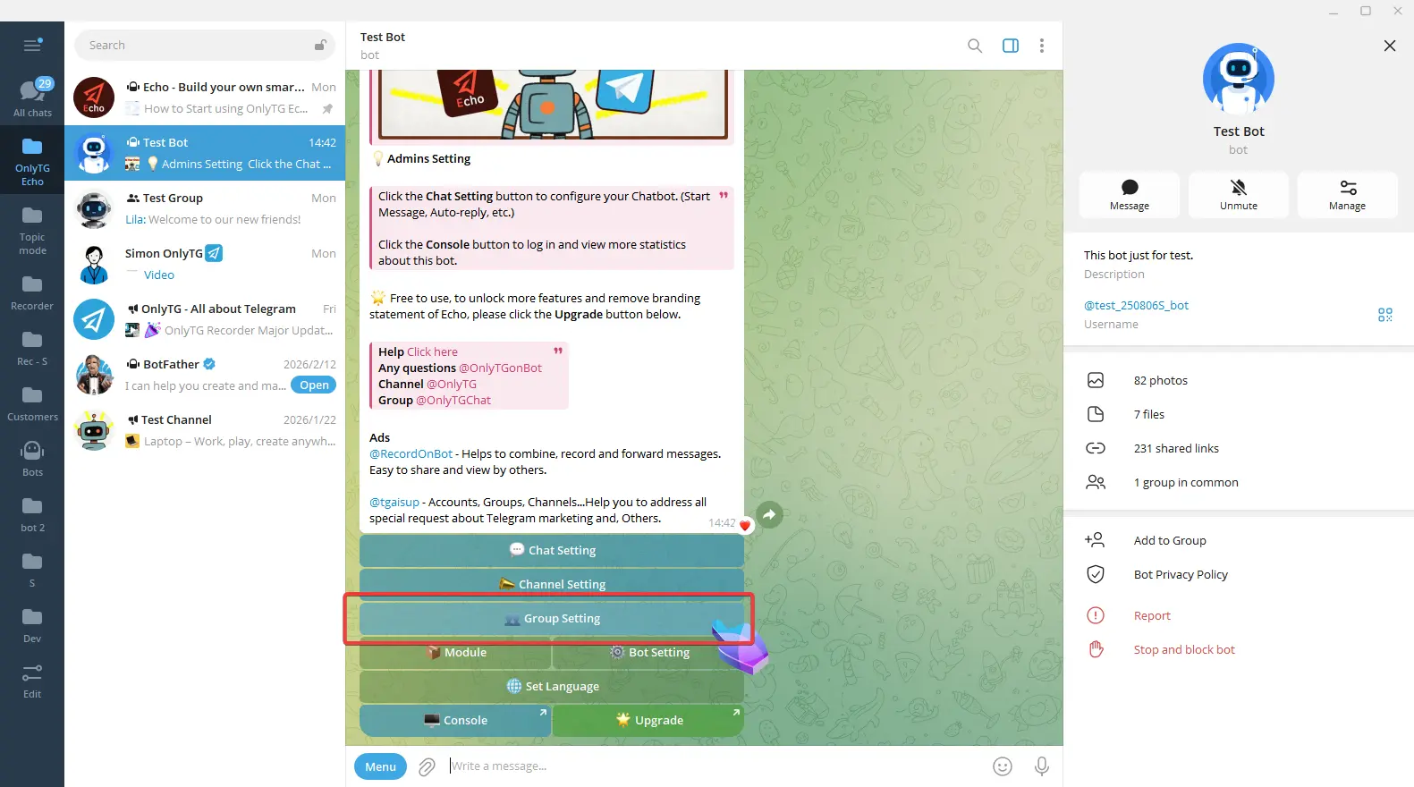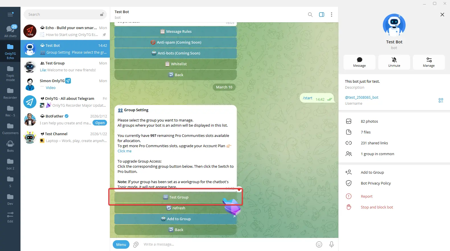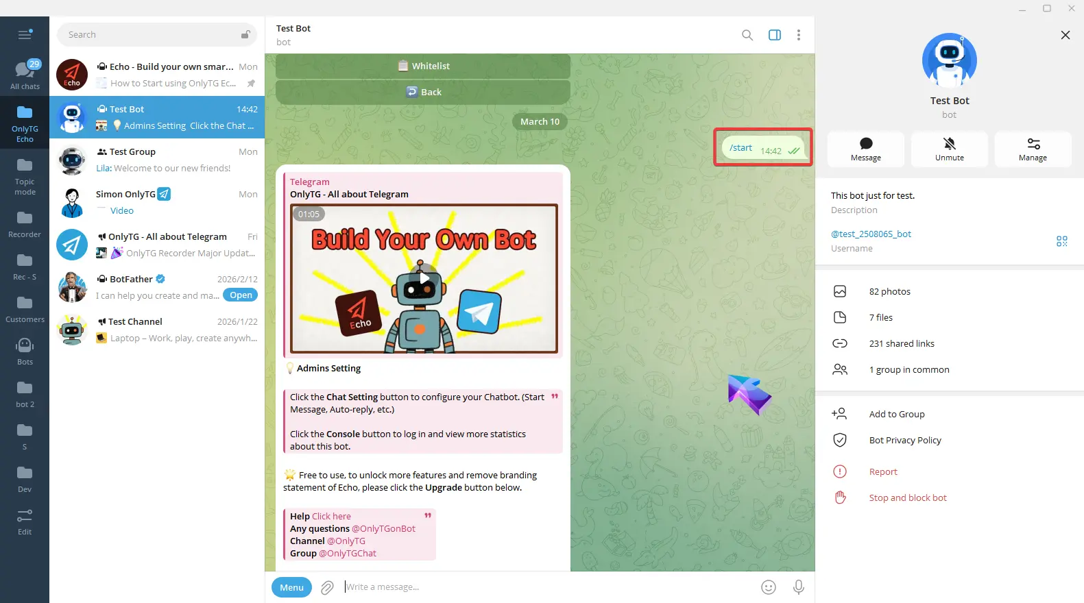 OnlyTG Echo provides the function to send the CAPTCHA test to new members joining the group. Firstly, you need to create a new bot…