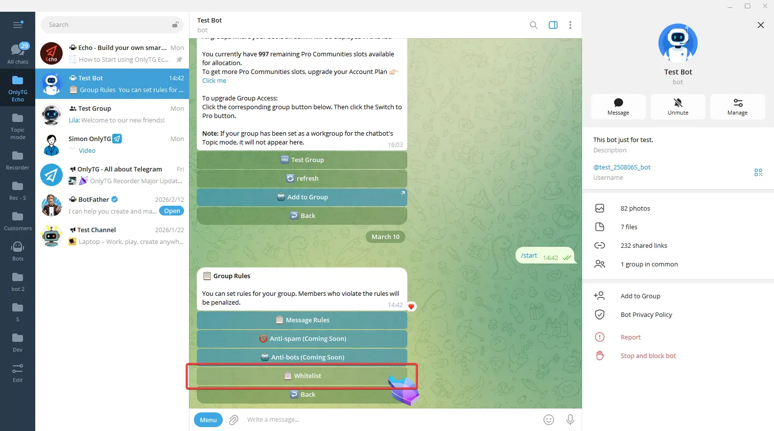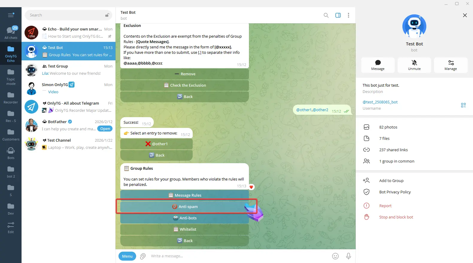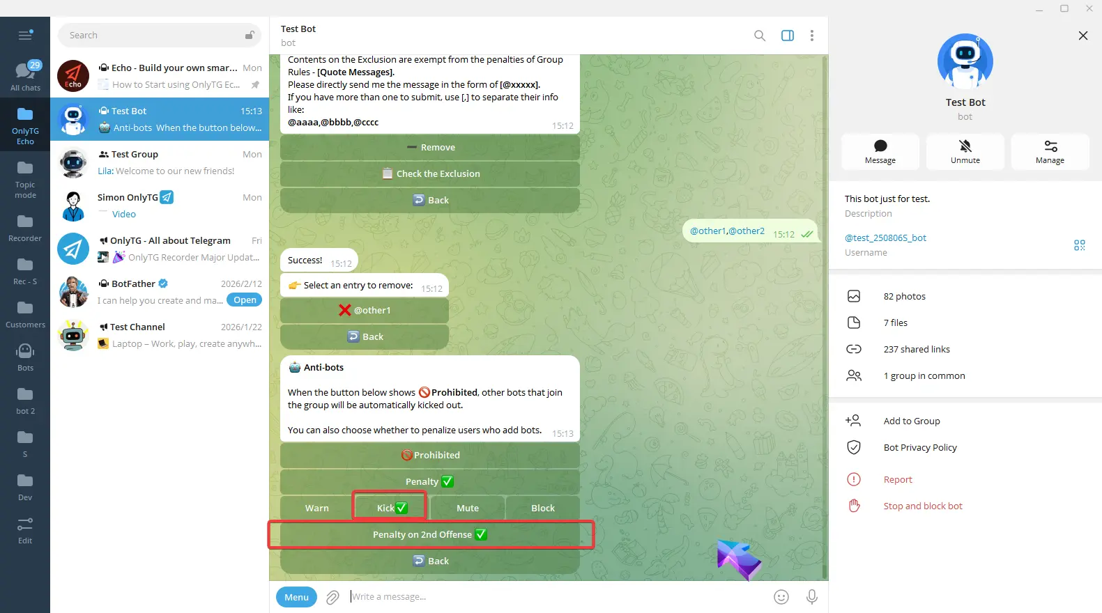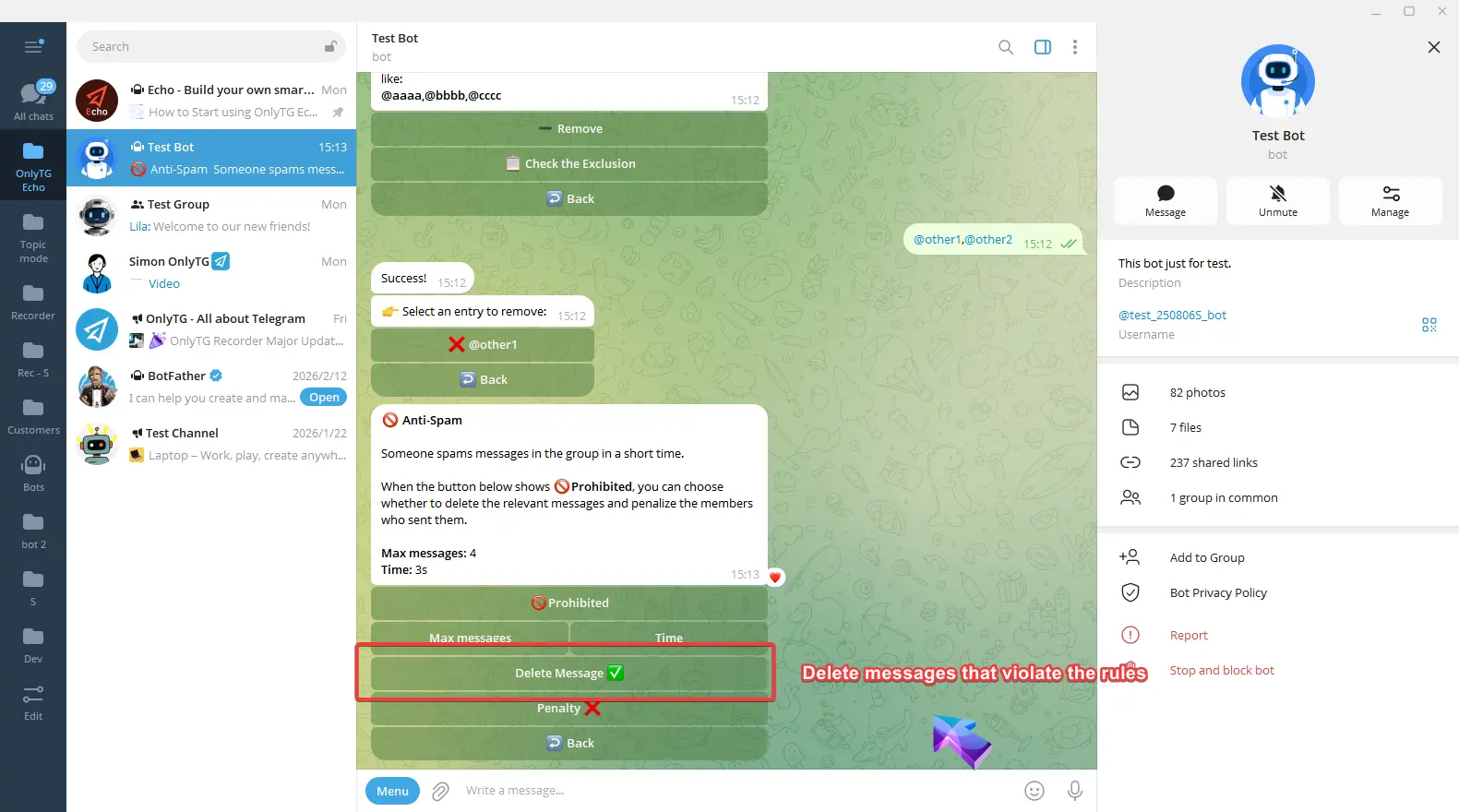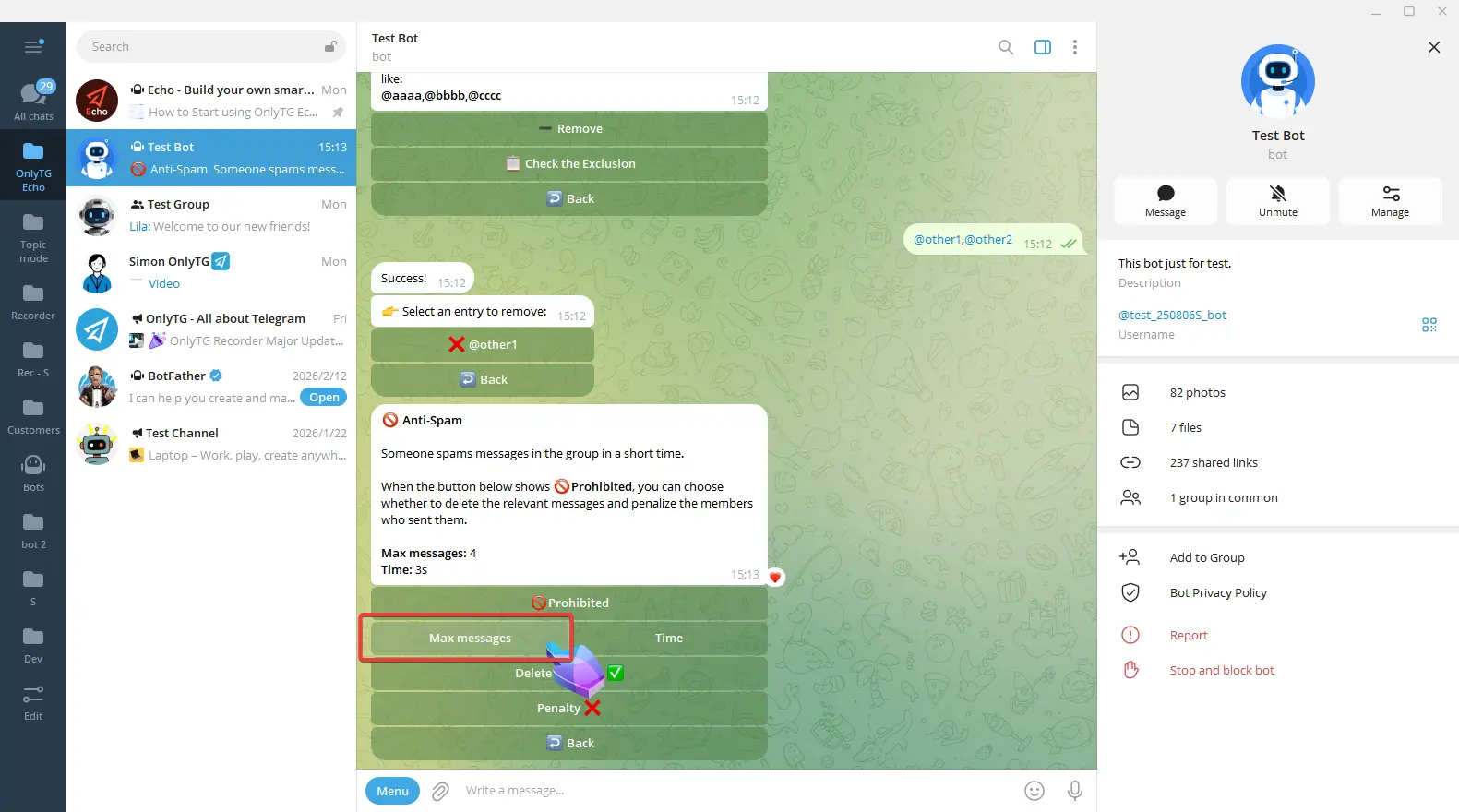 OnlyTG Echo provides the function to send the CAPTCHA test to new members joining the group. Firstly, you need to create a new bot…