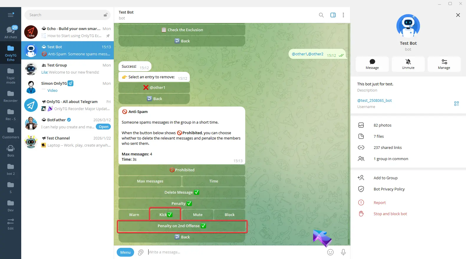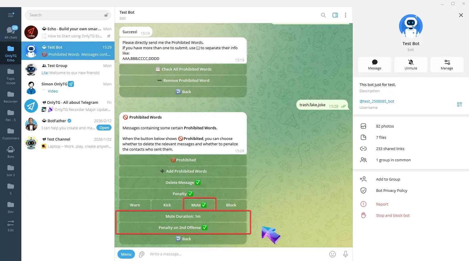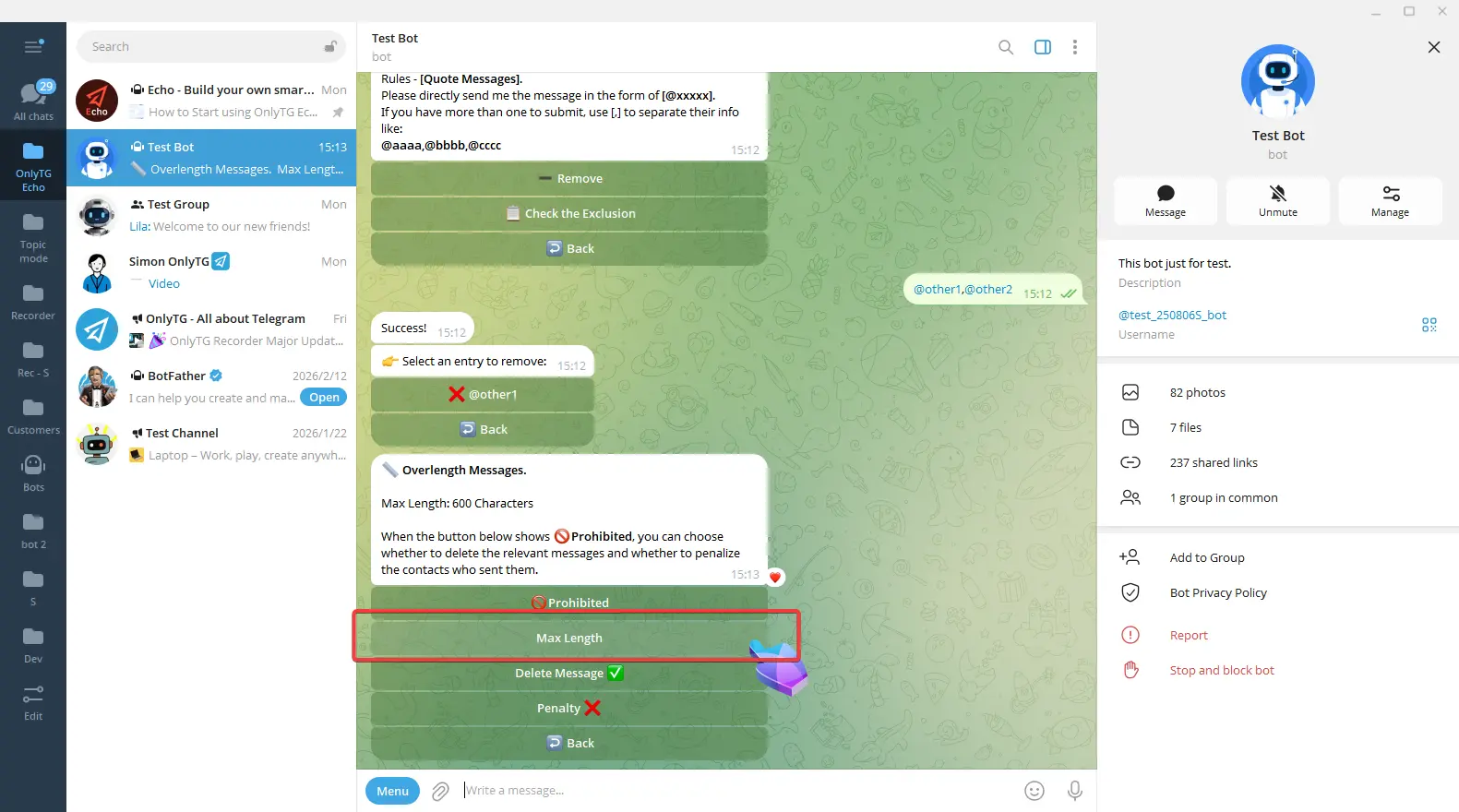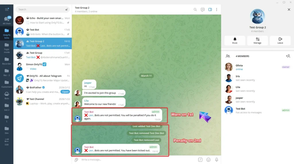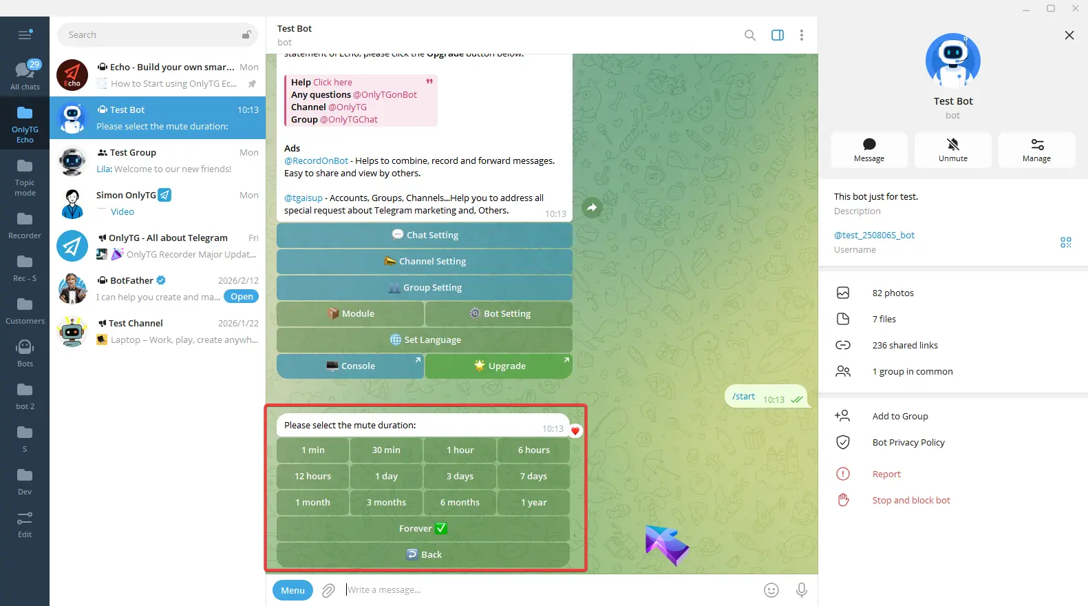 OnlyTG Echo provides the function to send the CAPTCHA test to new members joining the group. Firstly, you need to create a new bot…