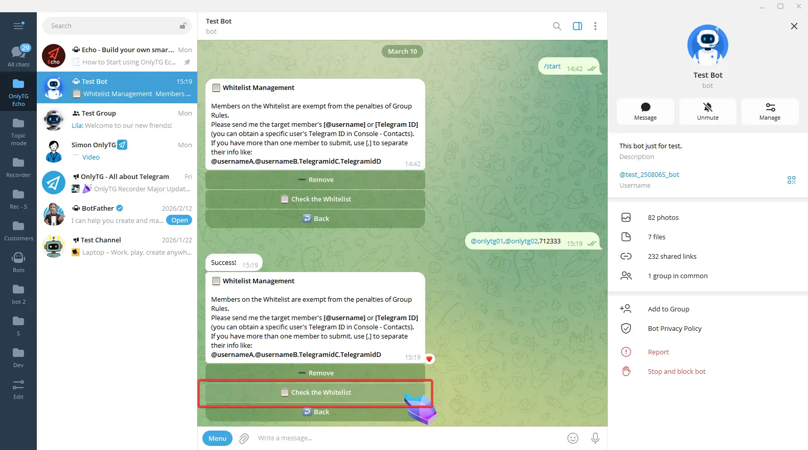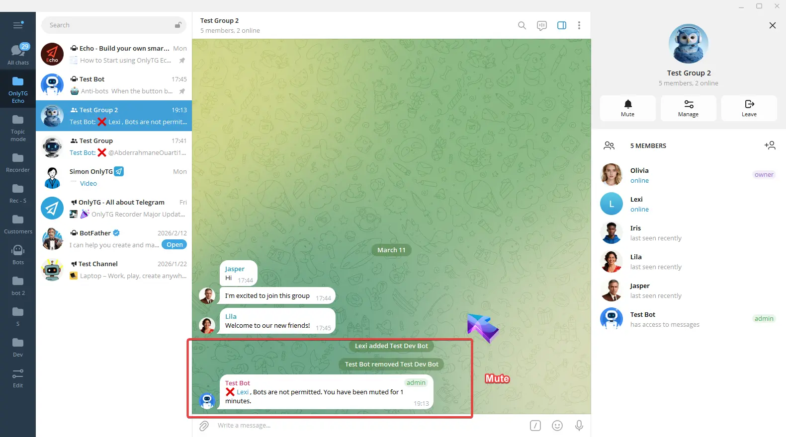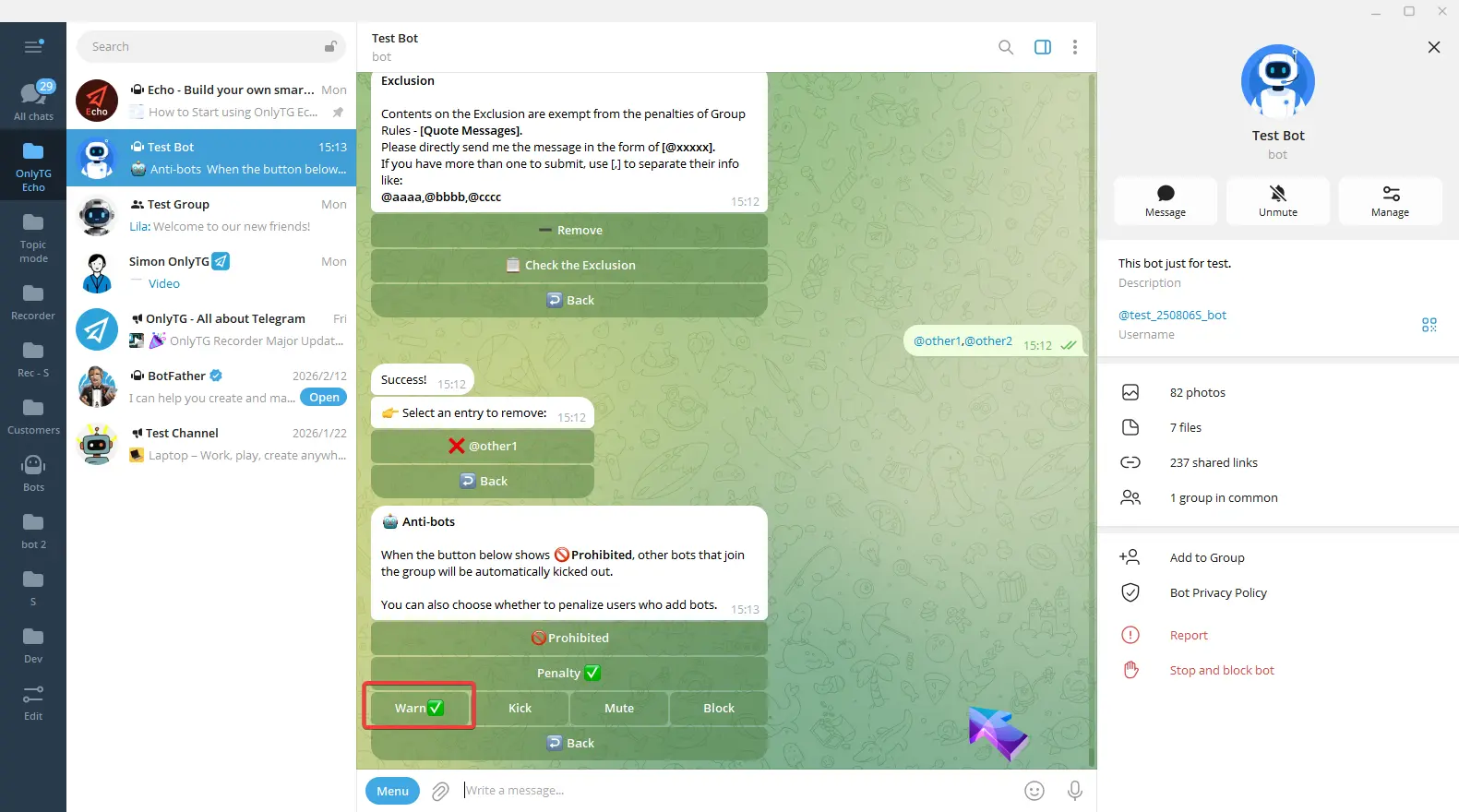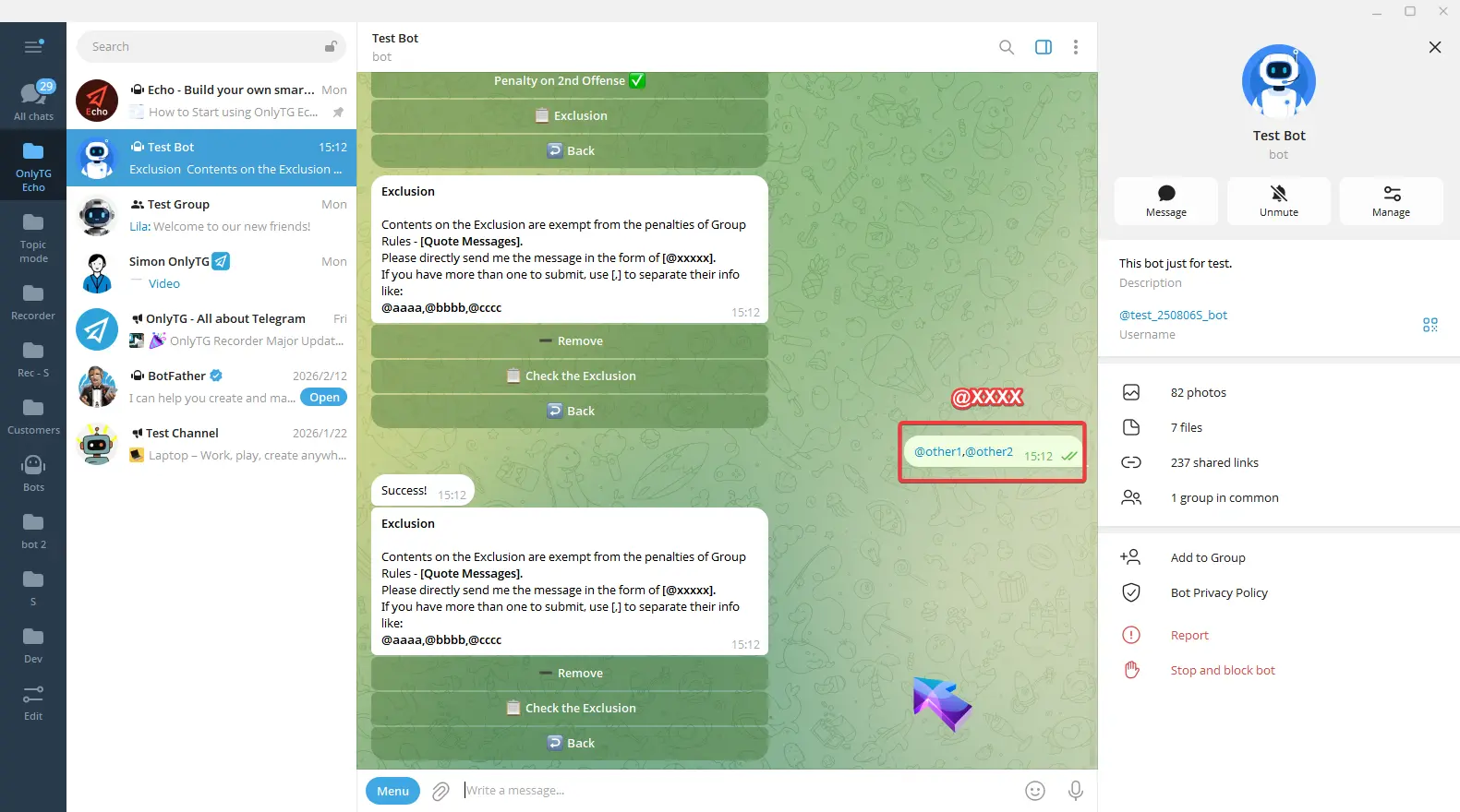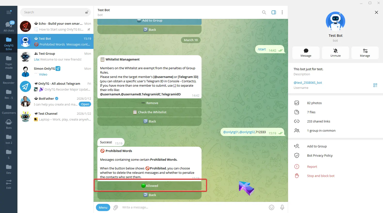 OnlyTG Echo provides the function to send the CAPTCHA test to new members joining the group. Firstly, you need to create a new bot…
