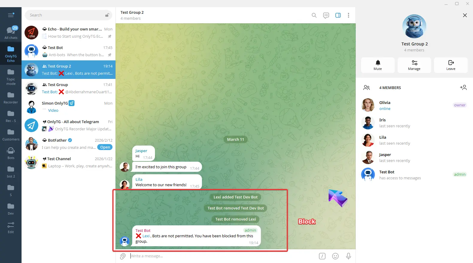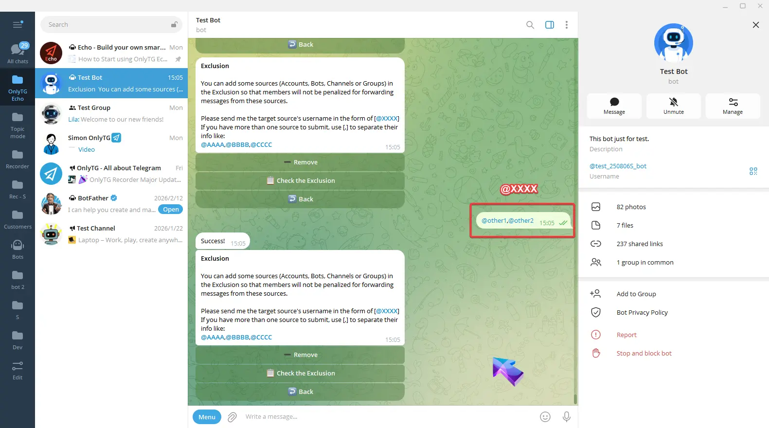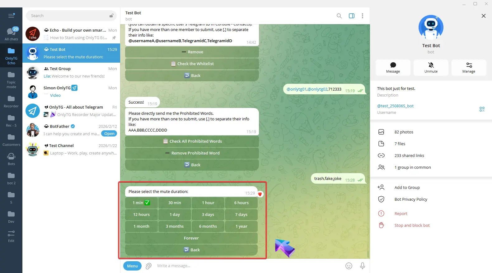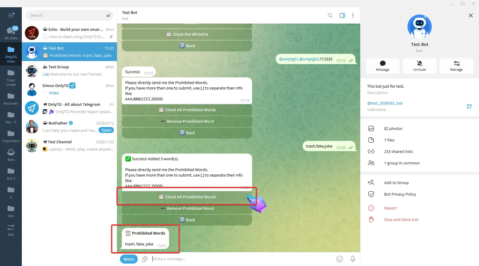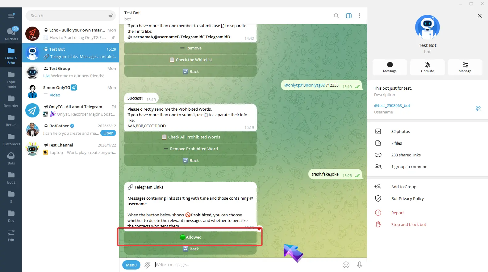 OnlyTG Echo provides the function to send the CAPTCHA test to new members joining the group. Firstly, you need to create a new bot…