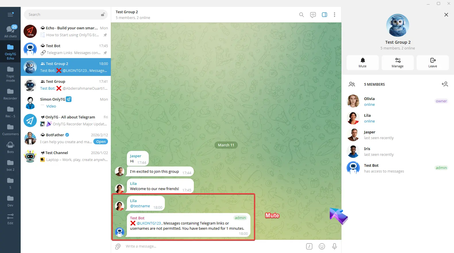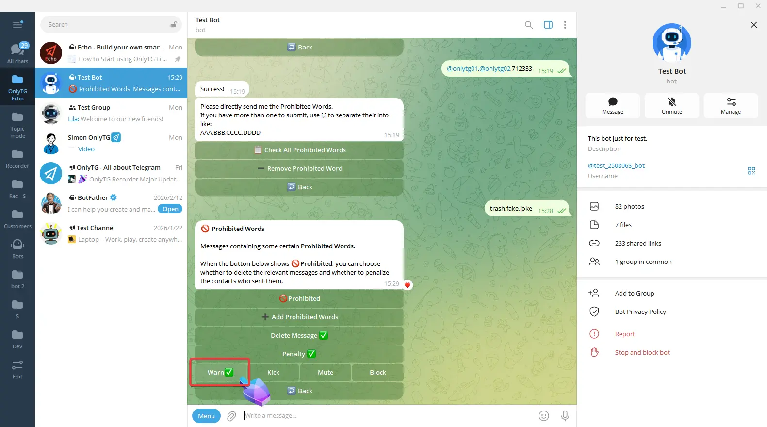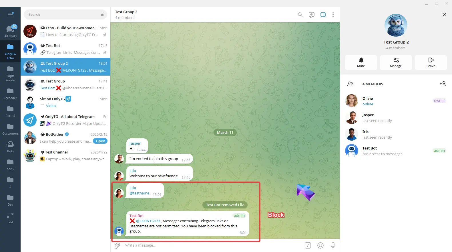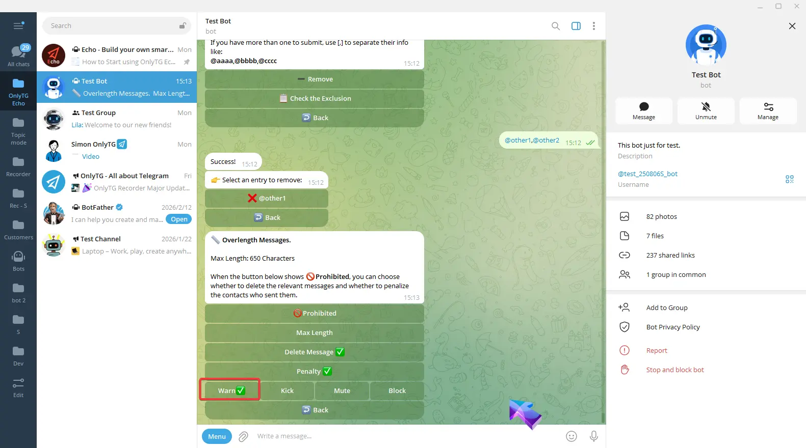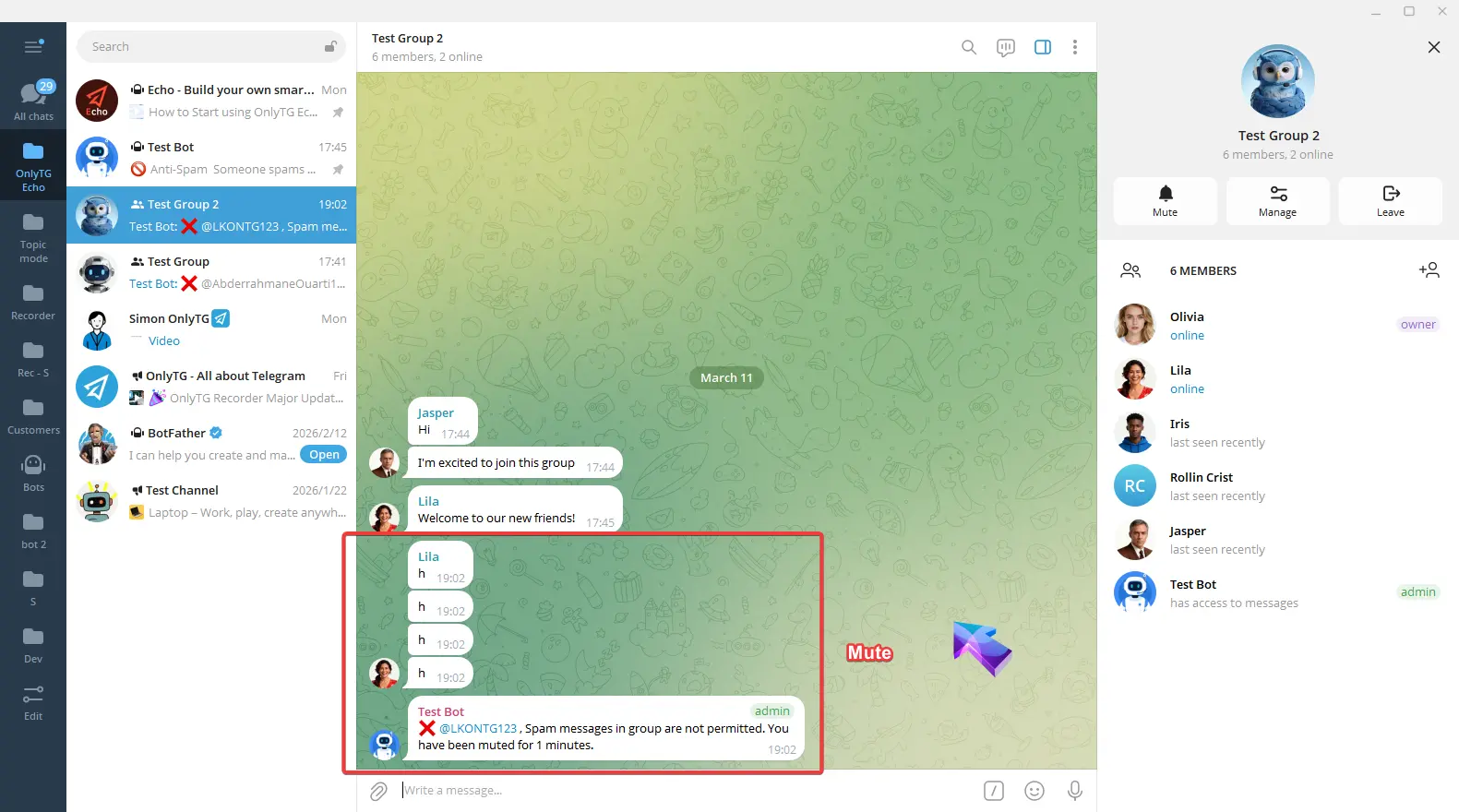 OnlyTG Echo provides the function to send the CAPTCHA test to new members joining the group. Firstly, you need to create a new bot…