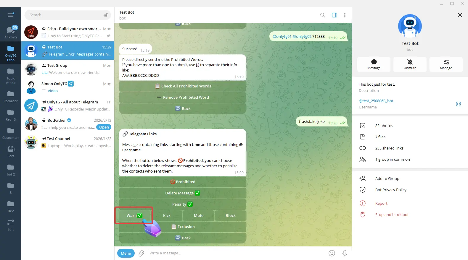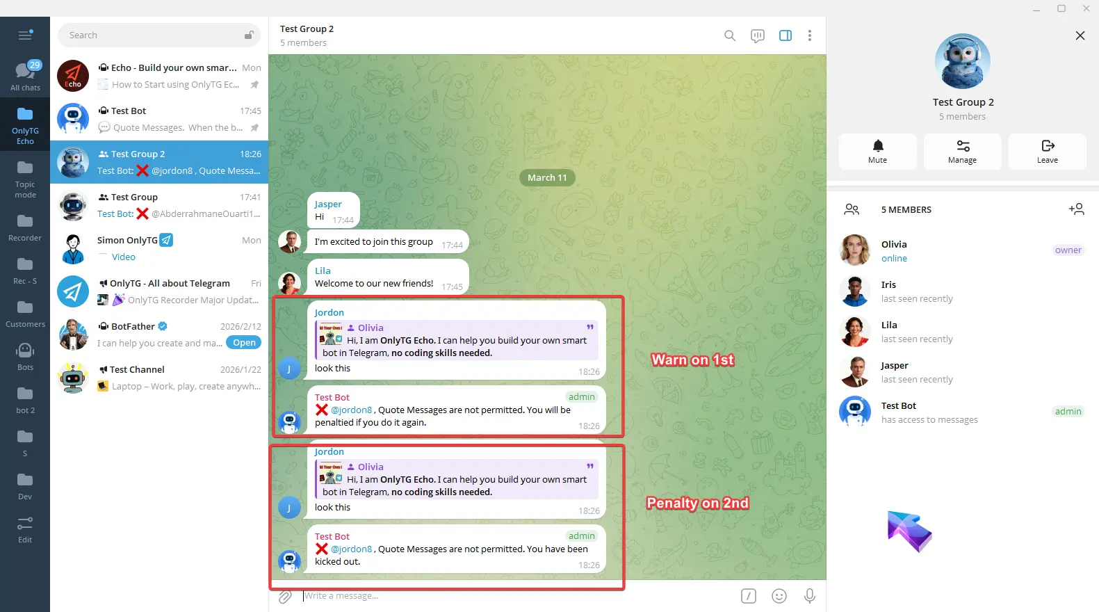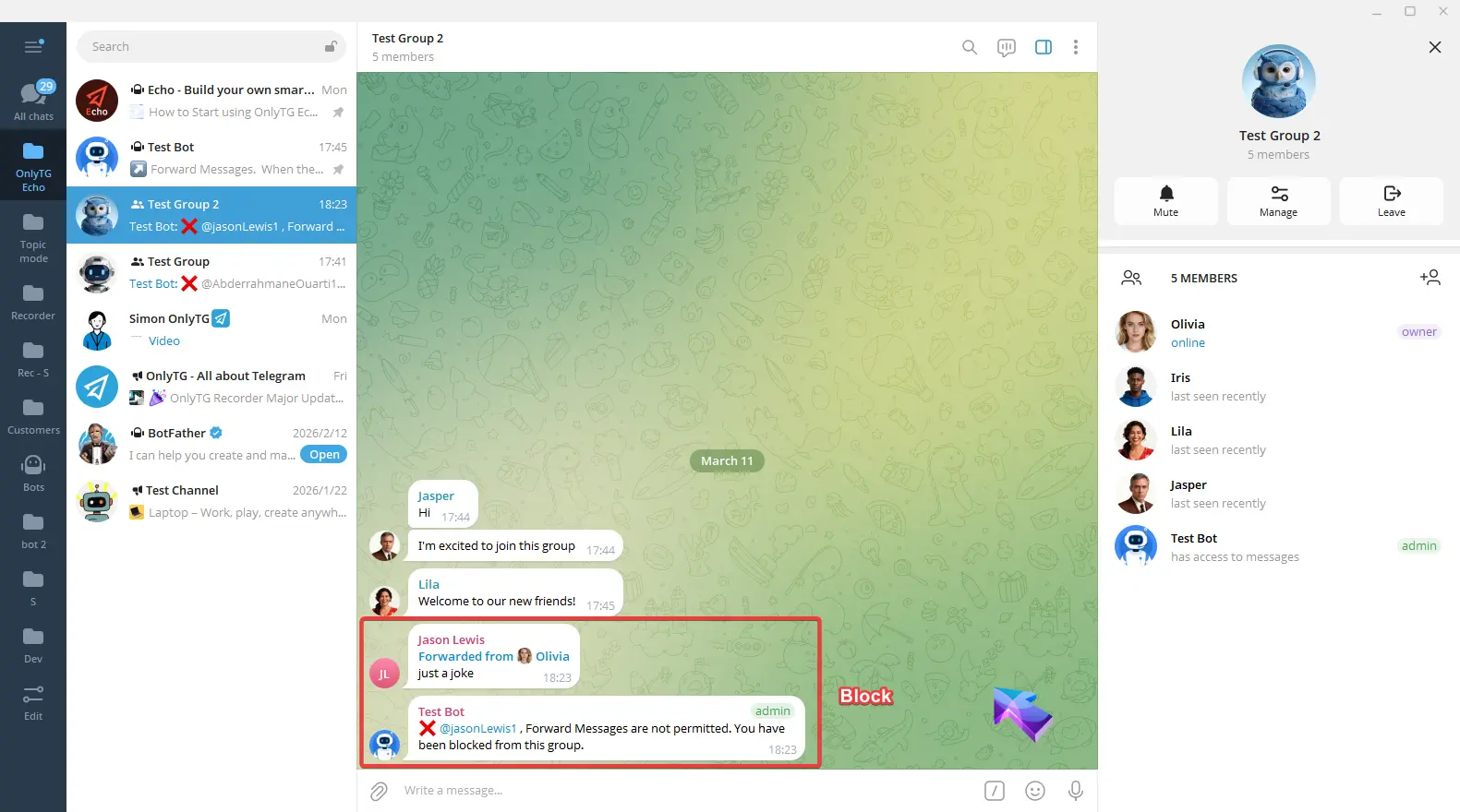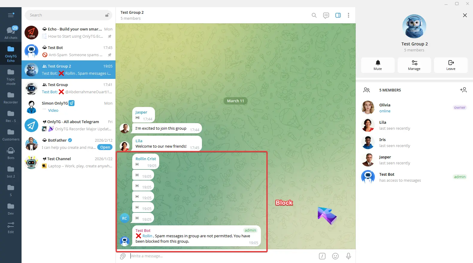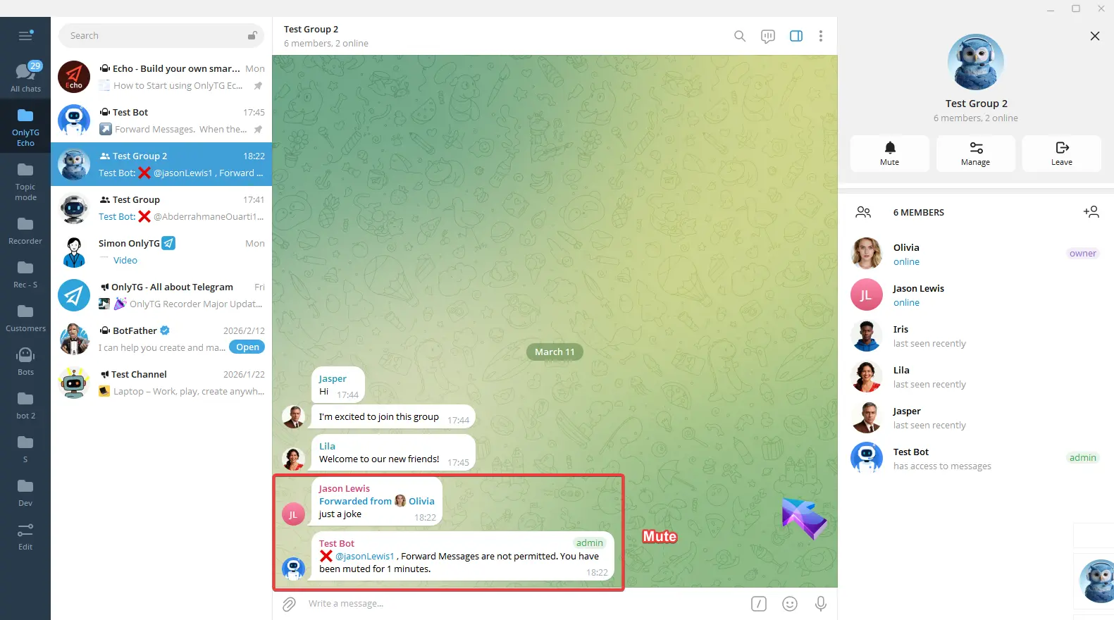 OnlyTG Echo provides the function to send the CAPTCHA test to new members joining the group. Firstly, you need to create a new bot…