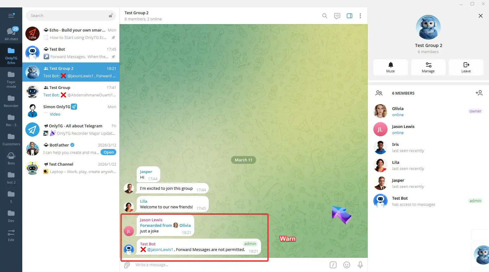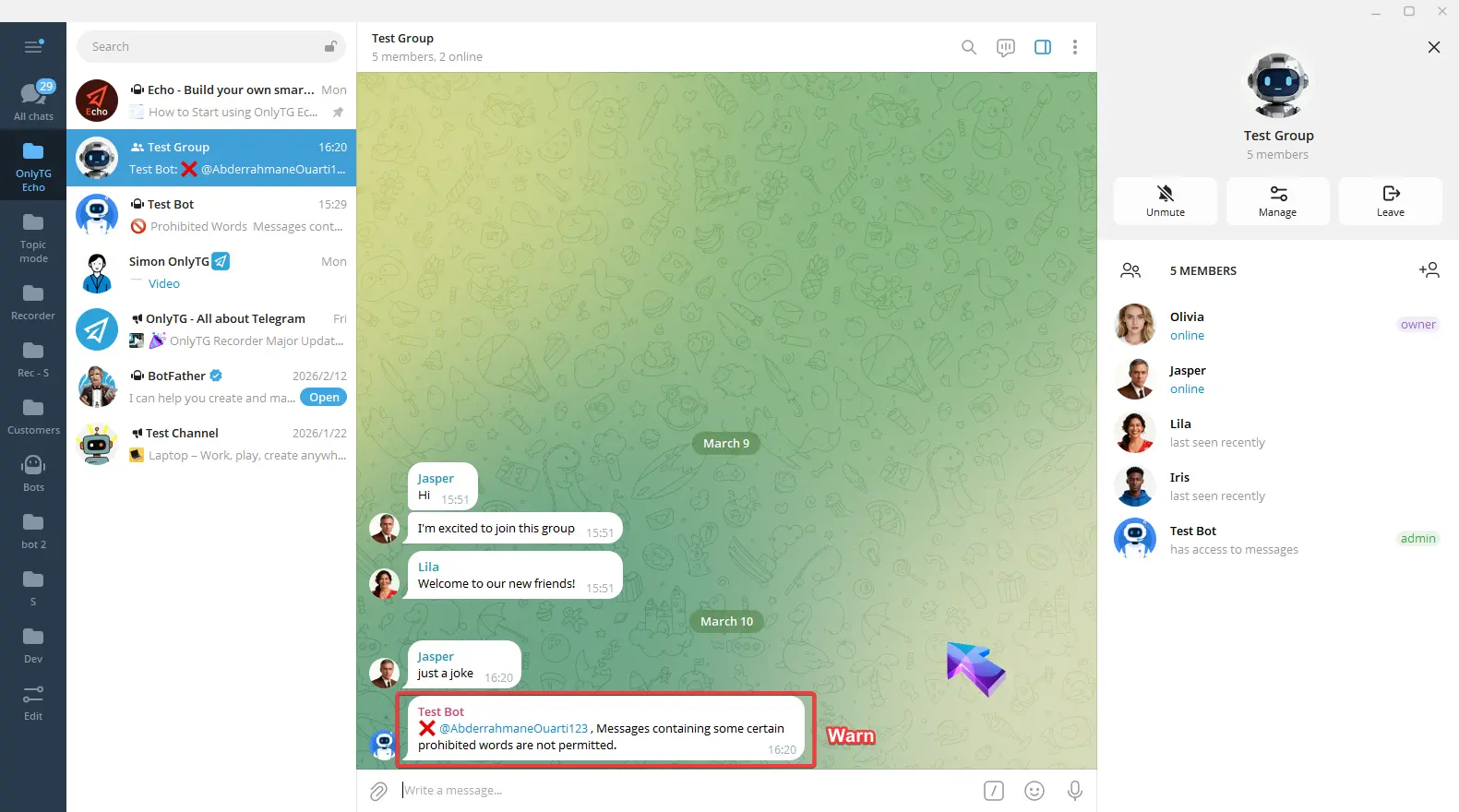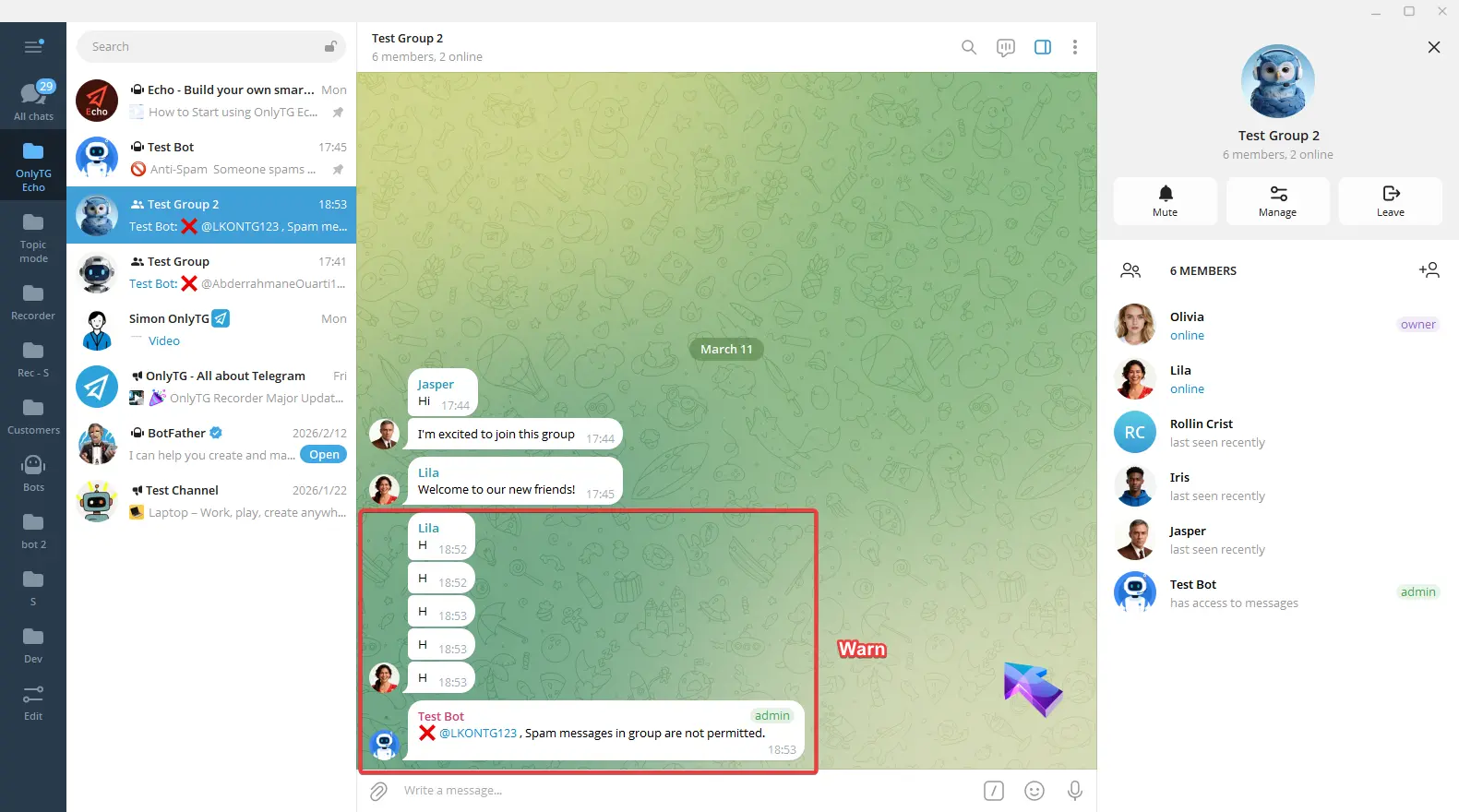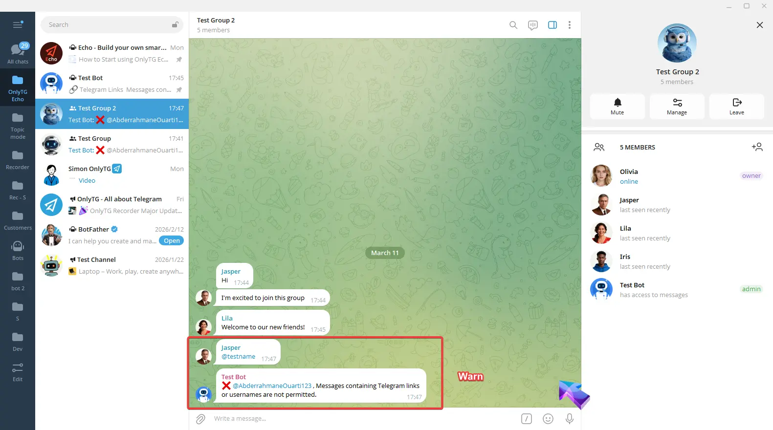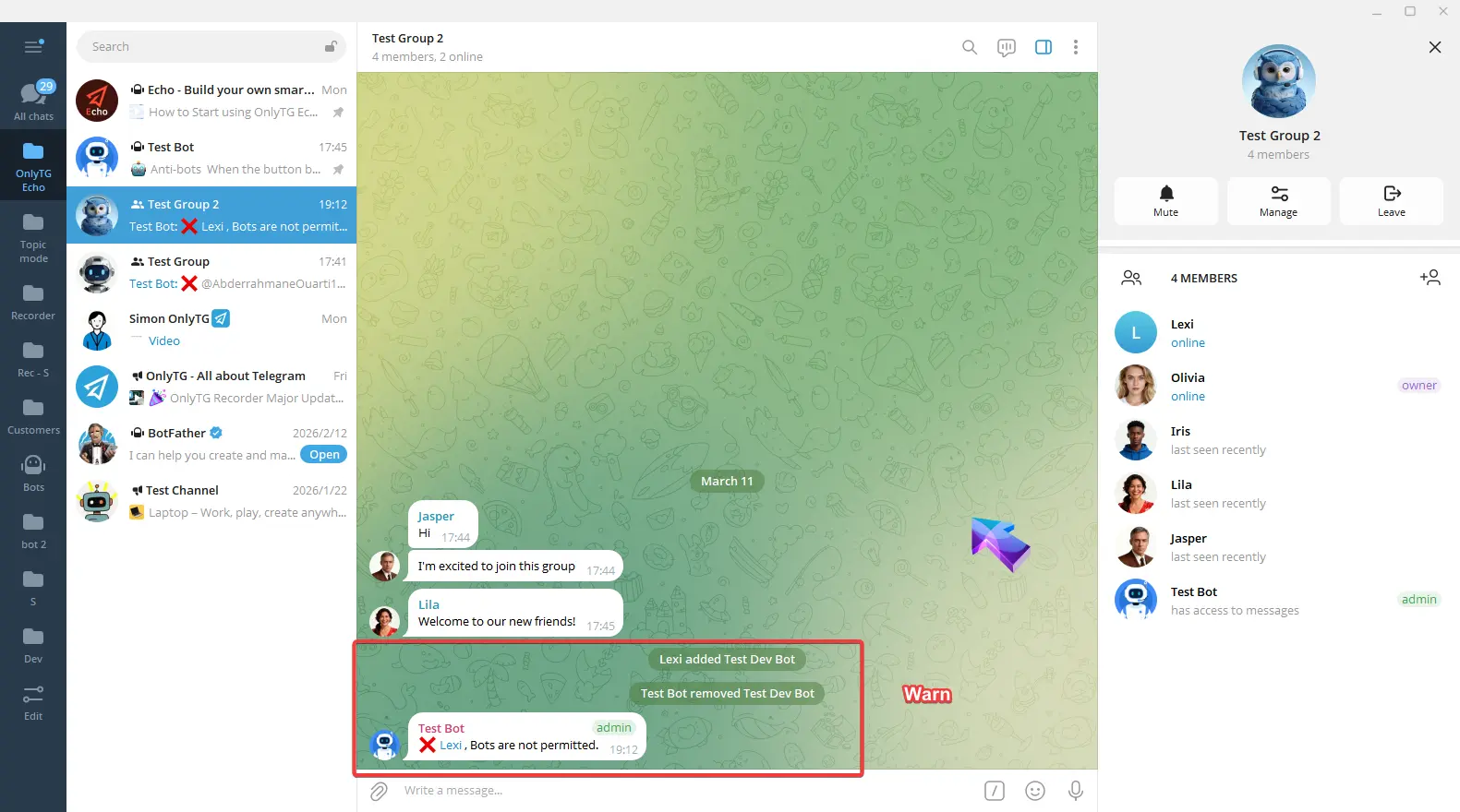 OnlyTG Echo provides the function to send the CAPTCHA test to new members joining the group. Firstly, you need to create a new bot…