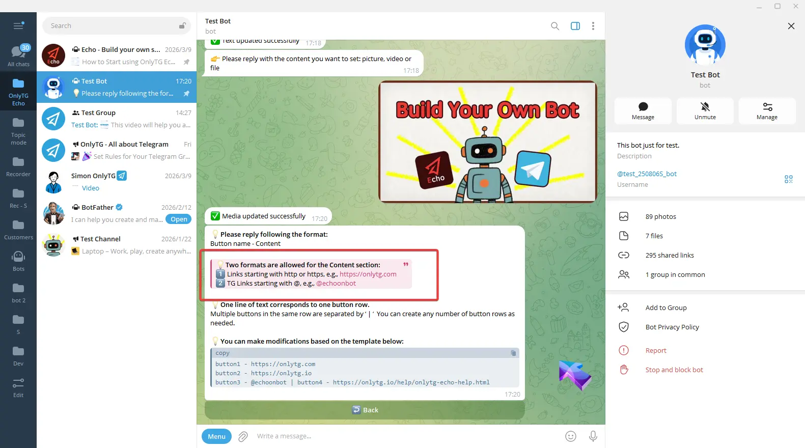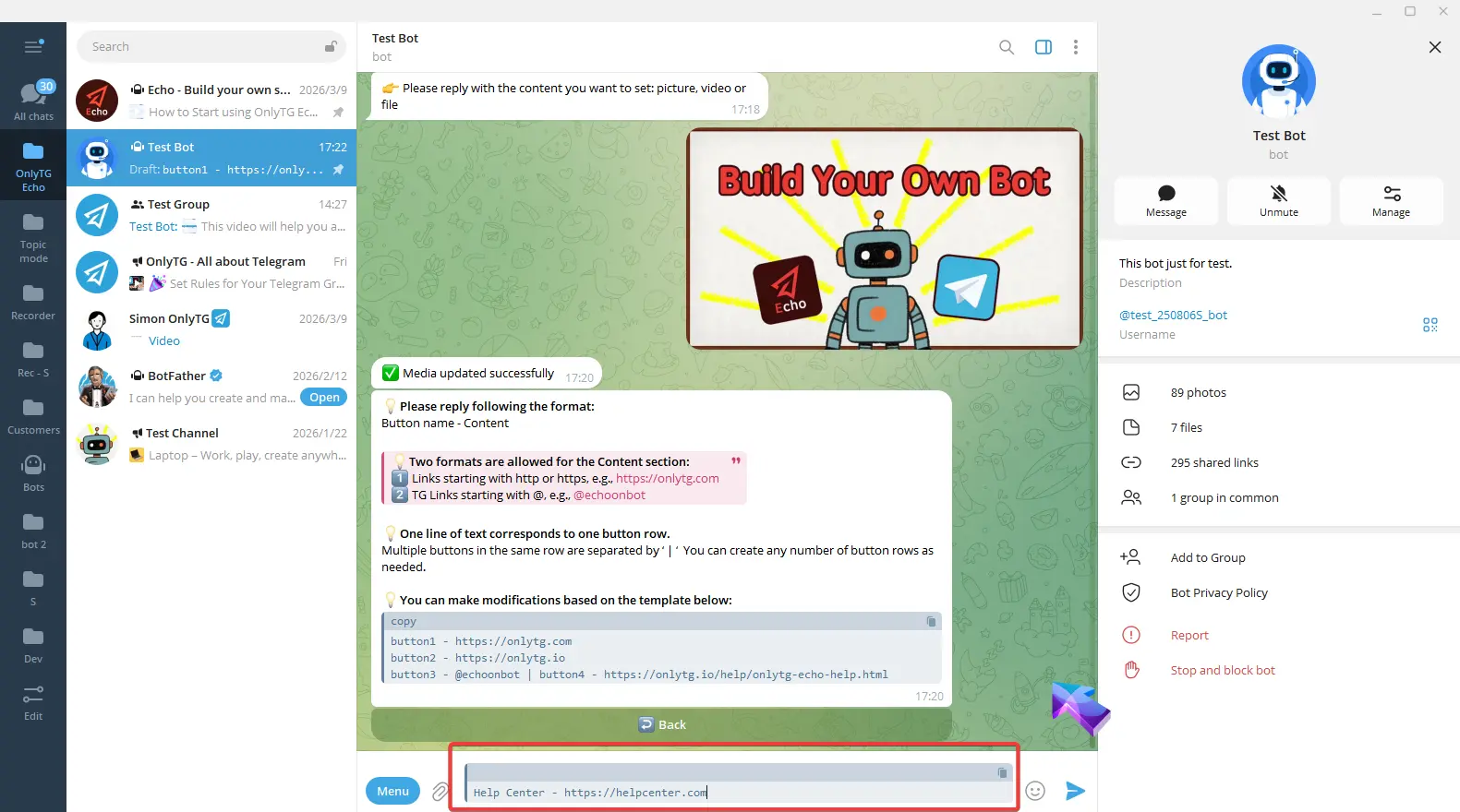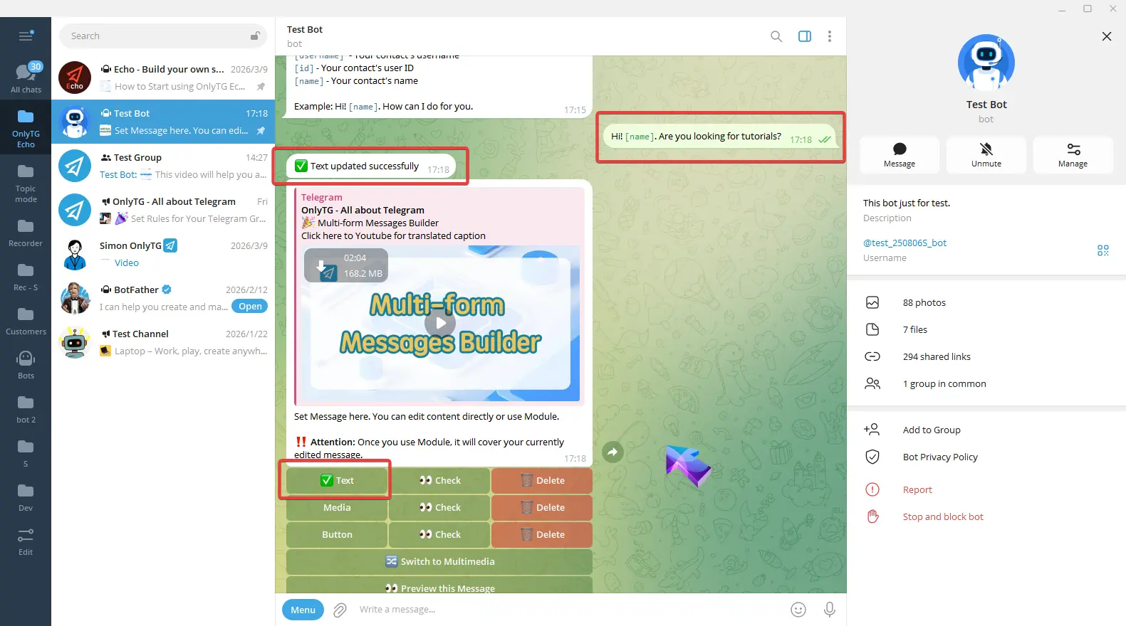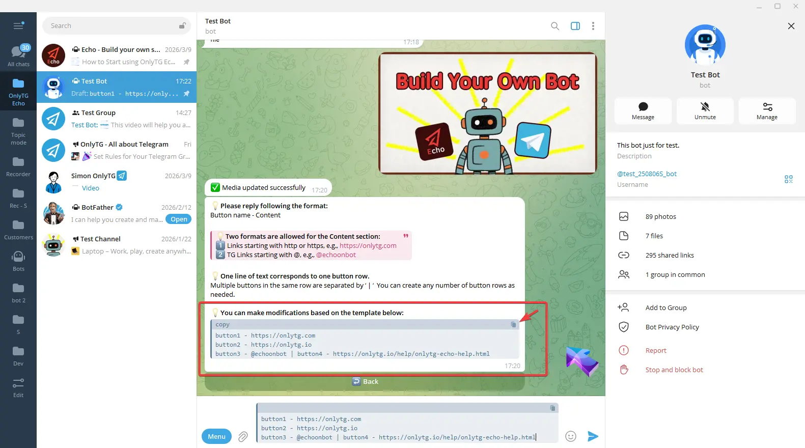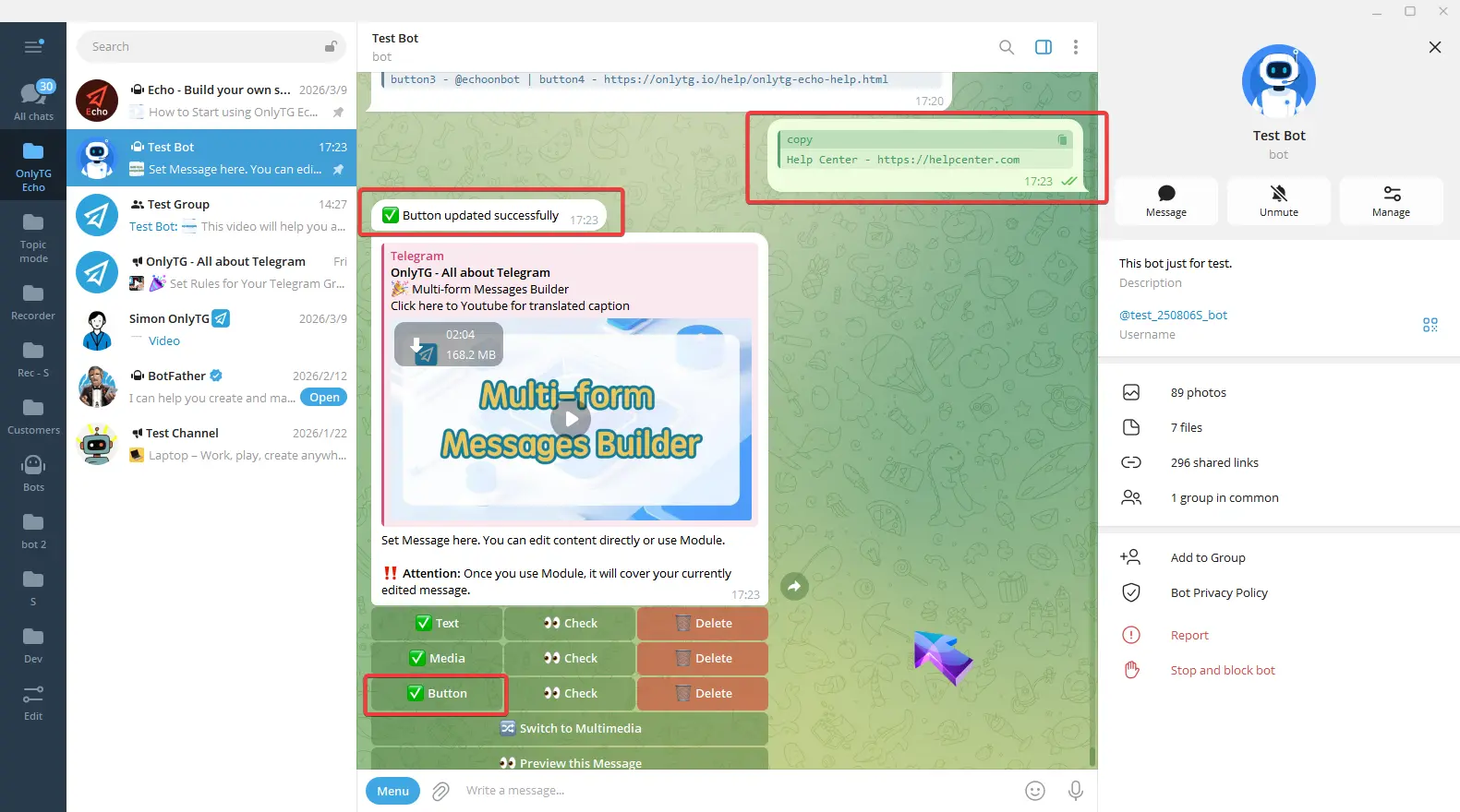 Switch to Multimedia: Convert the post to a mode which you can configure text and multiple images/videos, but files and buttons are not supported. We won’t use this mode for now. (Click here to learn how to set multimedia messages)