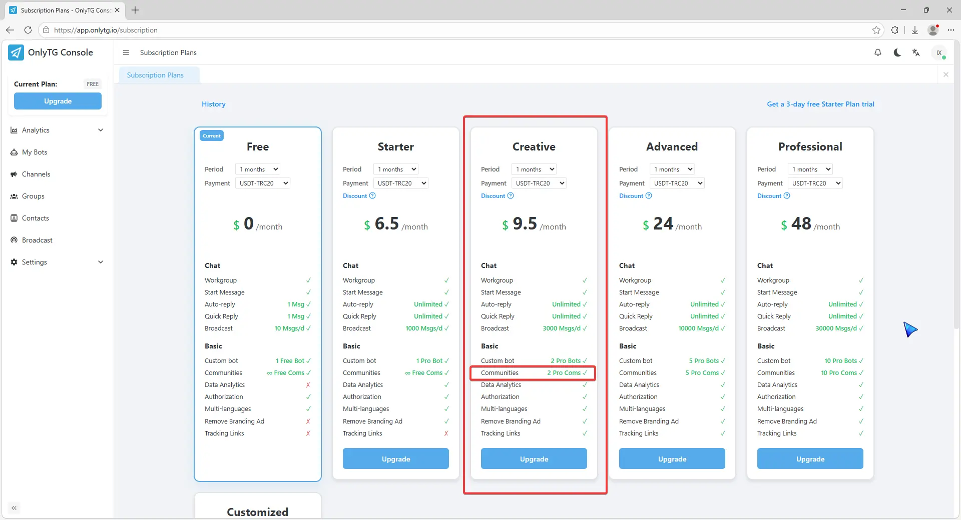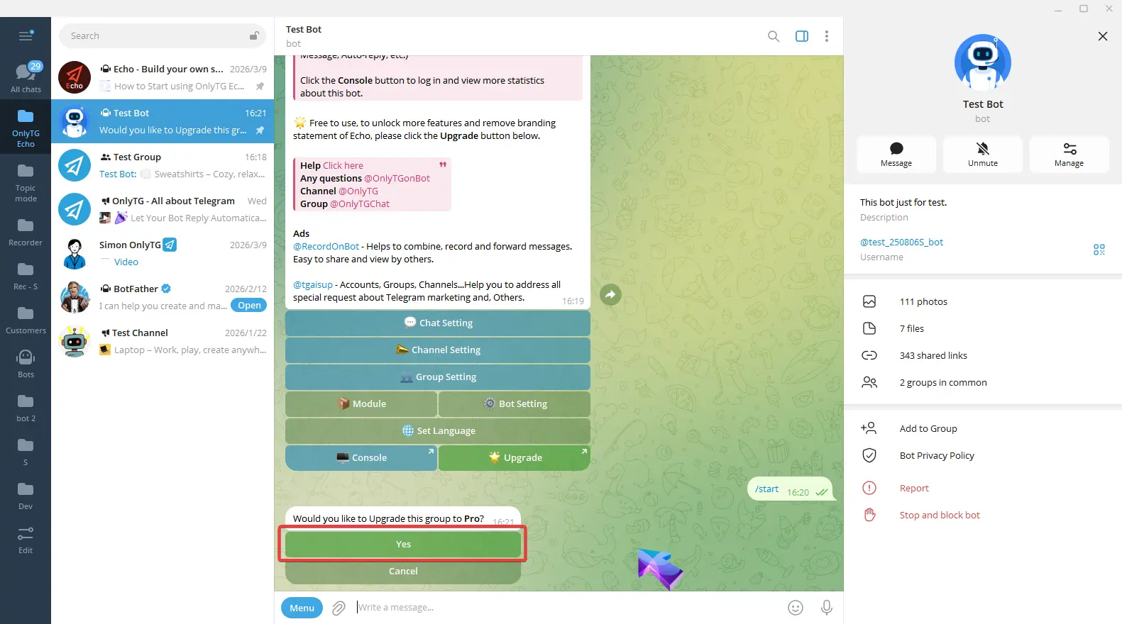 OnlyTG Echo provides the function to upgrade your channel to Pro Channel. This will consume your Pro Communities slots and unlock more advanced features….